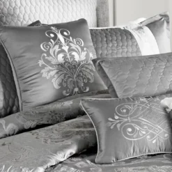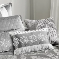Elevate your sleep space with the shimmering sophistication of this jacquard comforter set defined by its medallion and damask prints with embroidered borders. Matching shams and textured decorative pillows add to the decadence, and a complementary bedskirt completes the look for a total bedroom makeover.