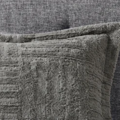- Material: Comforter: Checkboard brushed faux fur face, solid faux fur reverse, down alternative fill, jump tack Sham: Checkboard brushed faux