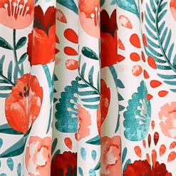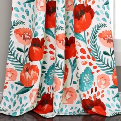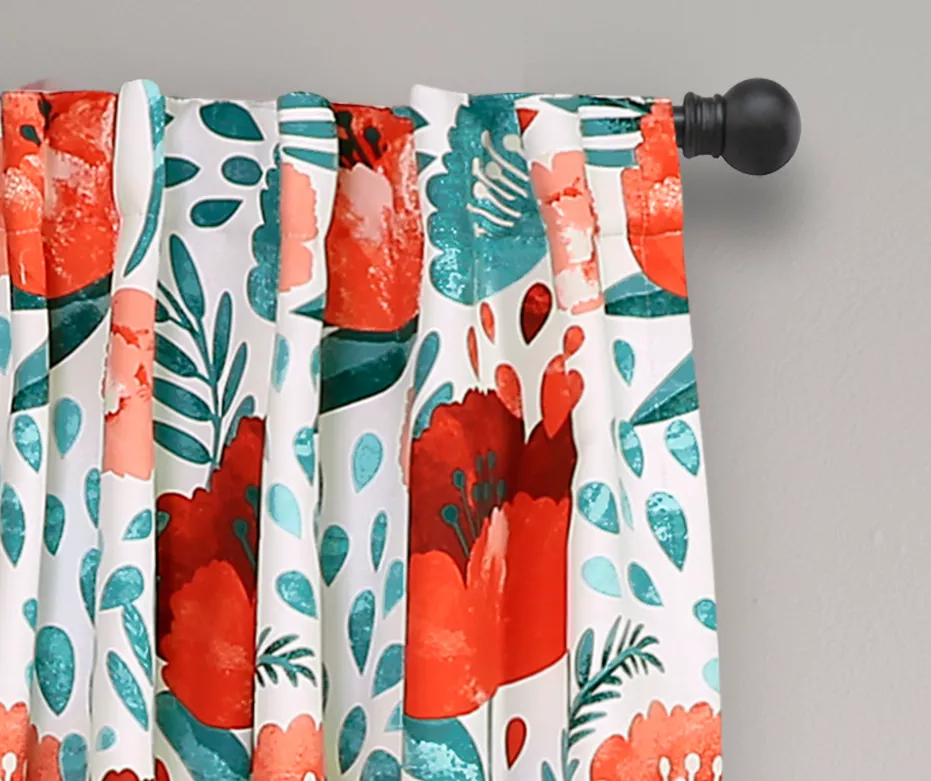 Bring the look of a colorful and thriving garden into your home with these room-darkening window panels. The teal and red poppies appear to be jumping off the white fabric with their vibrant colors. These curtains will add life to any room in your home while helping to filter out sunlight and enhance privacy.