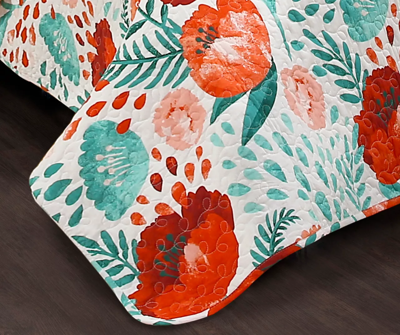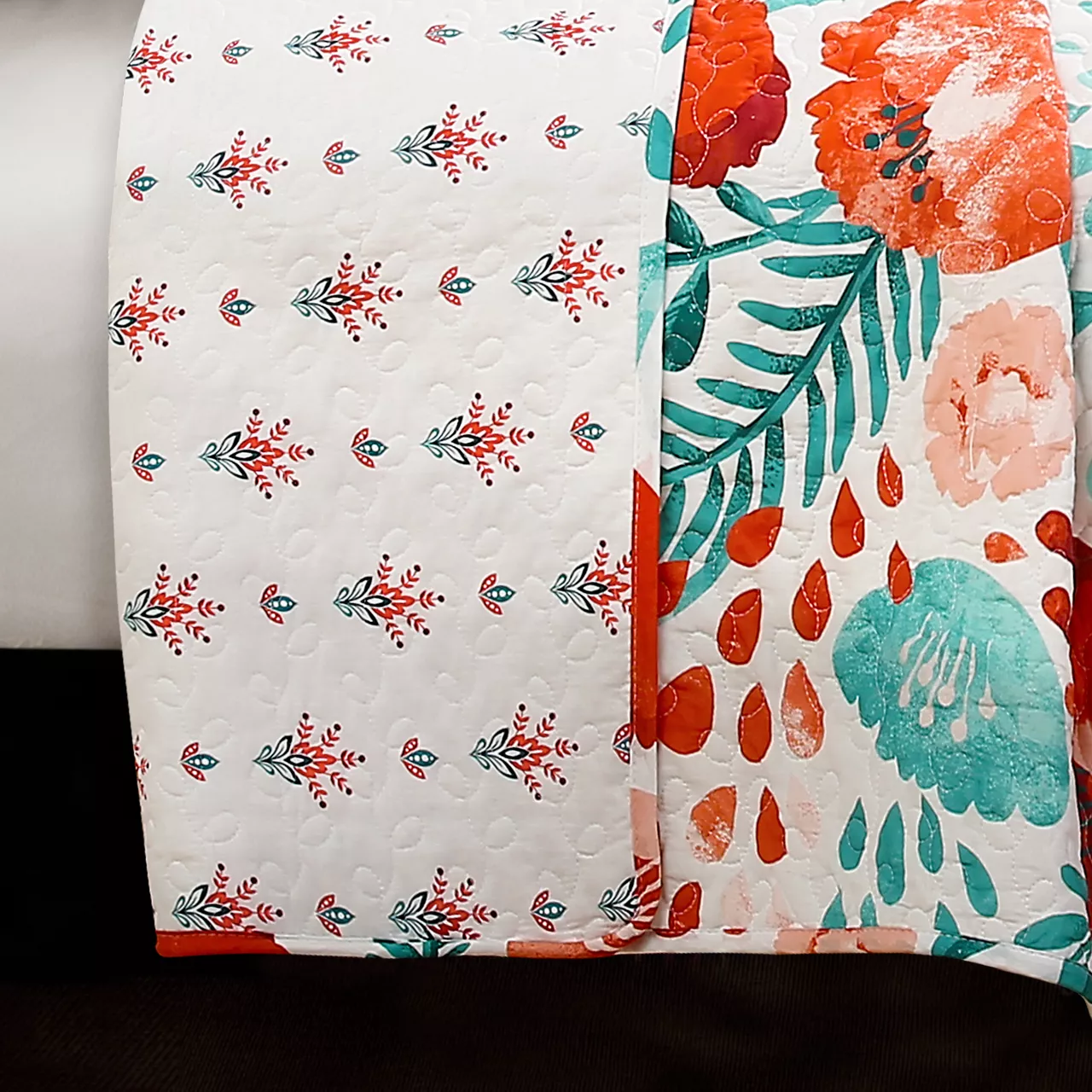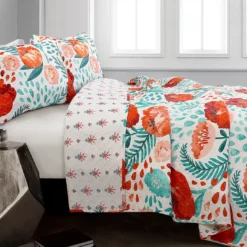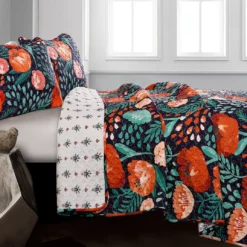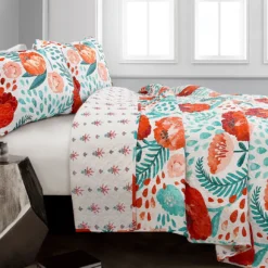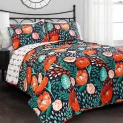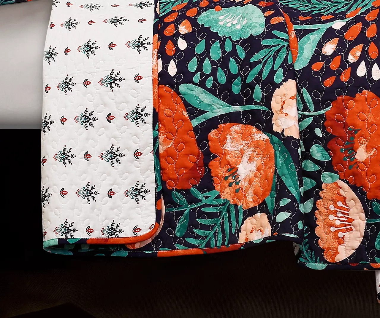 A watercolor poppy print brings a splash of natural sophistication to your sleep space, complemented by a neat floral pattern on the reverse side of this quilt set. Breathable cotton fabric keeps you comfy and cozy through the night, and coordinating shams complete the look.