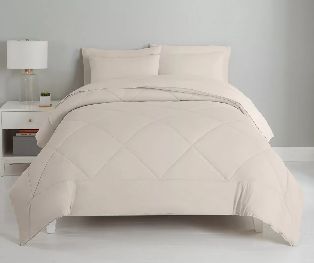 - Includes comforter, 2 shams, flat sheet, fitted sheet and 2 pillowcases