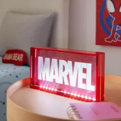 Stylize your space with the ambient glow and of this LED neon lamp featuring a sleek rectangular acrylic shape with the iconic Marvel logo in red.