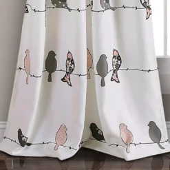 - Blush and gray patterned birds sit on wires in this whimsical nature-inspired print