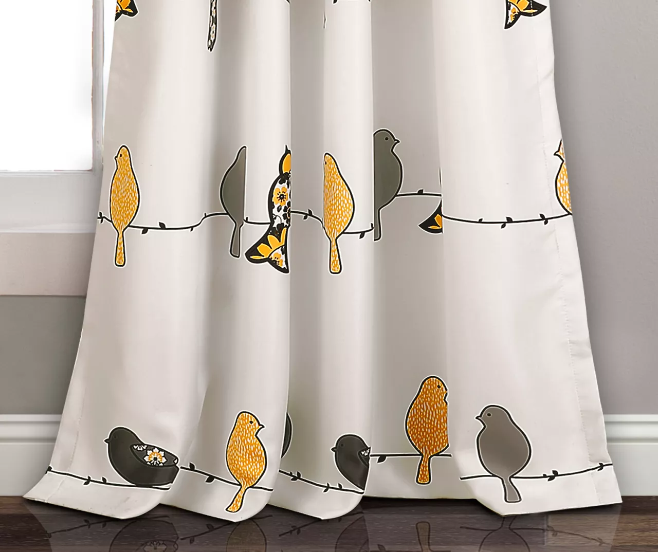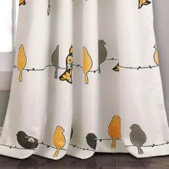 These stylish room-darkening curtain panels bring the feel of the city into your home thanks to an eclectic design of colorful birds sitting on wires. Beautiful shades of yellow and gray adorn a solid white background with eye-catching avian charm. The panels filter sunlight, adding energy efficiency capabilities and enhancing privacy. Hang them in the living room, dining room, bedroom or anywhere you could use a finishing touch of color and pattern.