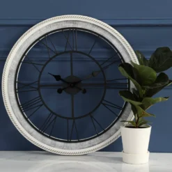 With a textured edge, bold Roman numerals and a whitewashed finish on the frame, this round wall clock from Broyhill brings rustic and traditional sophistication to your wall space while helping you track the time through the day.