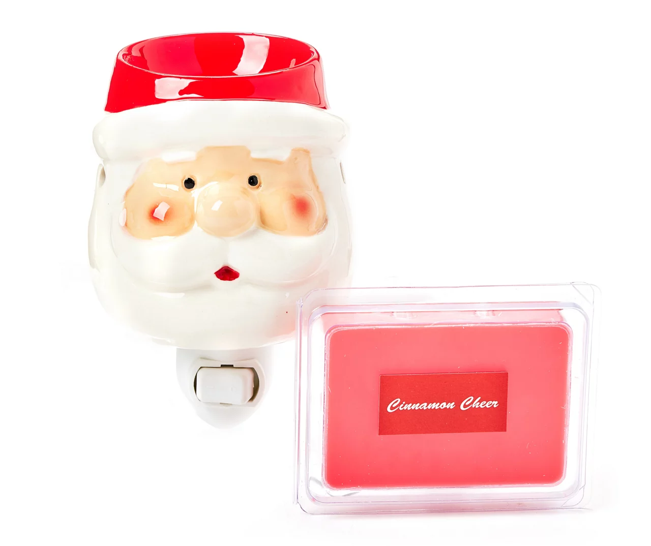 This plug-in wax warmer and wax melt set brings wonderful seasonal sights and smells to your home! Durable ceramic is made to look like Santa Claus as the recessed dish on the top heats to distribute fragrance from wax cubes and fragrance oils. Complete with a packet of wax melts featuring a Cinnamon Cheer-inspired aroma, this set is a charming addition to your holiday celebrations.