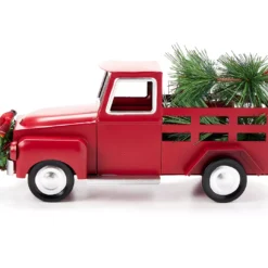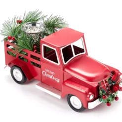 - Metal retro-style truck in red with “Merry Christmas” message on door