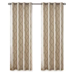 Sereno Fretwork Beige Light-Filtering Grommet Curtain Panel, (63″)