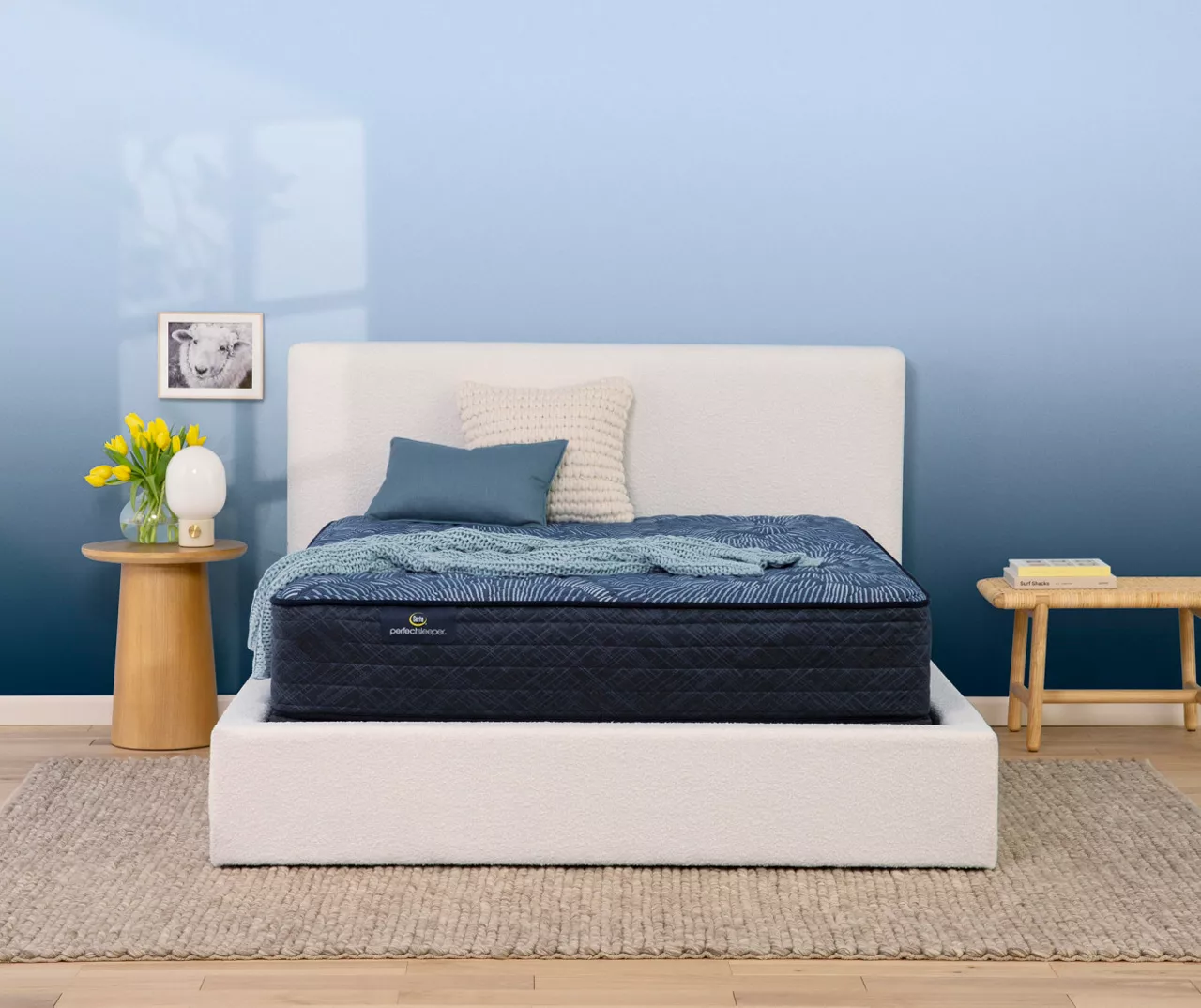 - Includes full-size mattress with an extra firm feel and low profile box spring