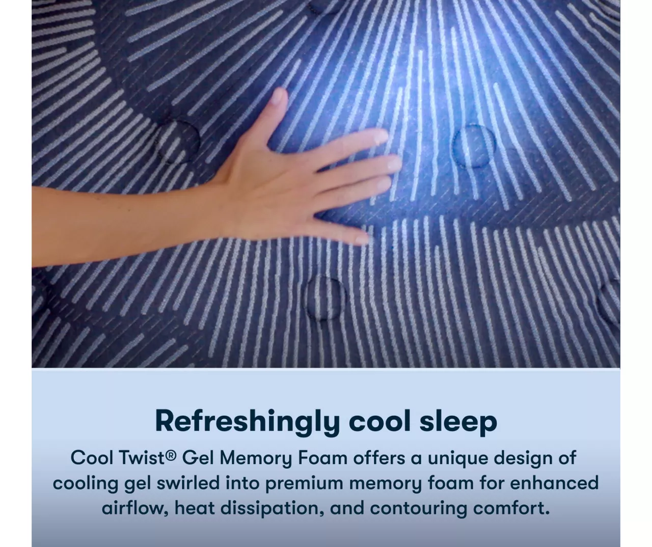 - Cool Twist Gel Memory Foam features cooling gel swirled into premium memory foam to help enhance airflow and heat dissipation for a feeling that can only be described as a cool, contouring type of comfort