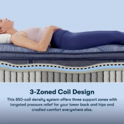 - 850 Coil density system offers 3 support zones with targeted support for your lower back, hips and cradled comfort everywhere else