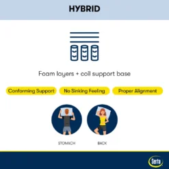 - Includes full-size hybrid mattress with a firm feel and low profile box spring