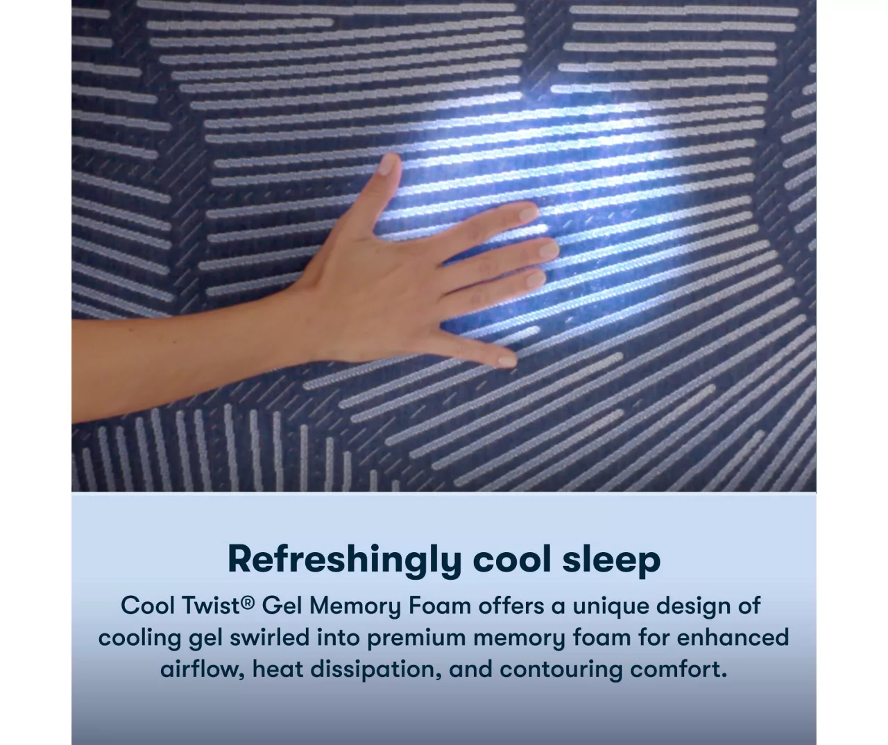 - Cool Twist Gel Memory Foam features cooling gel swirled into premium memory foam, helping to enhance airflow and heat dissipation for a feeling that can only be described as a cool, contouring type of comfort