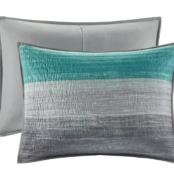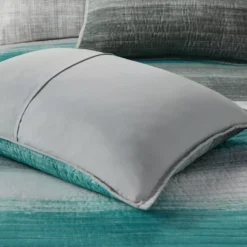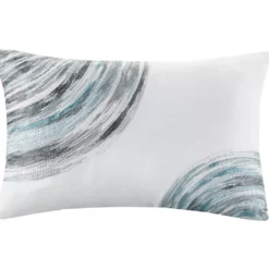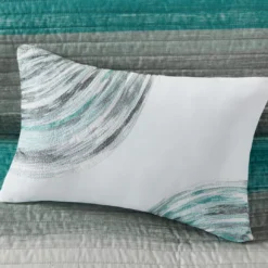 The Seth coverlet set provides a modern update to your bedroom with its watercolor paint stroke design in cool shades of aqua and gray. The matching shams mirror the pattern of the comforter, while an embroidered decorative pillow and a solid gray bed skirt complete the modern look. A coordinating textured cotton sheet set wraps you in breathable comfort while complementing the overall look. Bringing the best in health and wellness, this bedding set also features an antimicrobial* treatment that provides built-in freshness protection, reducing the growth of odor causing bacteria and keeps fabric lasting longer.
