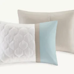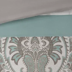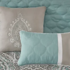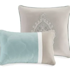 - Includes comforter, bed skirt, 2 – shams, 2 – euro shams and 2 – decorative pillows