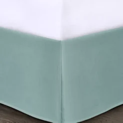 - Material: Soft microfiber face and reverse comforter, print details pieced with quilting, 6 oz/sq yard polyester filling; microfiber bed skirt