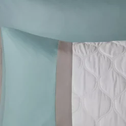 - Diamond quilted pieced color block with partial printed damask comforter