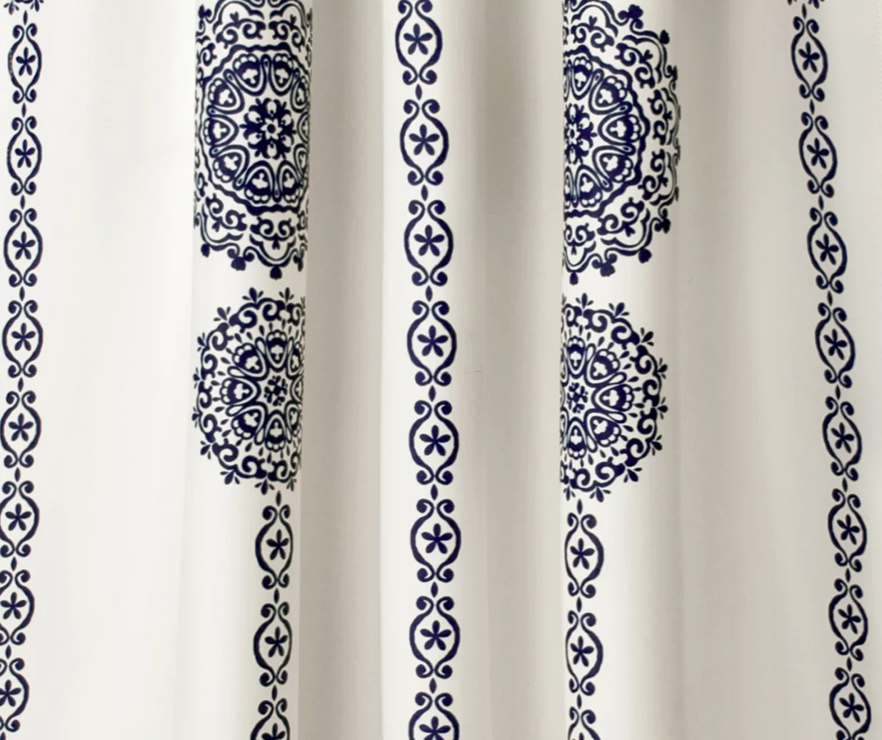 Be the first to review “Stripe Medallion Navy Room-Darkening Rod Pocket Curtain Panel Pair, (95″)” Cancel reply