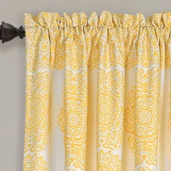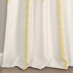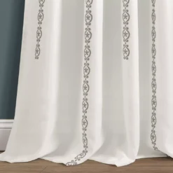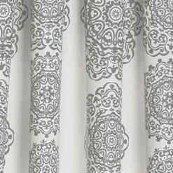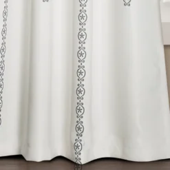 - Medallion stripes elevate a solid white curtain