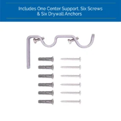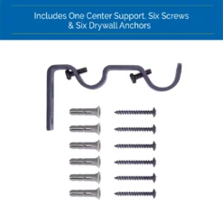 - Includes 1 telescoping double curtain rod with 2 mounting brackets, 1 center support, screws, drywall anchors and installation instructions