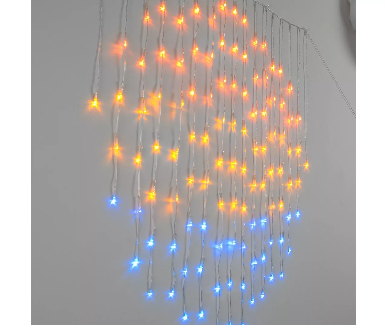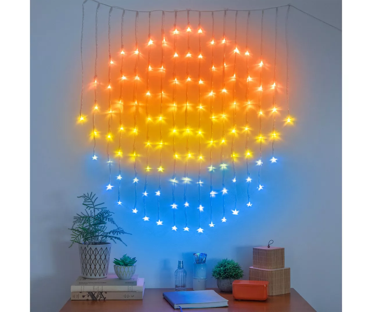 Create a whimsical and warm living space with the addition of these lovely battery-powered LED curtain lights featuring a unique round light shape in warm sunset colors.