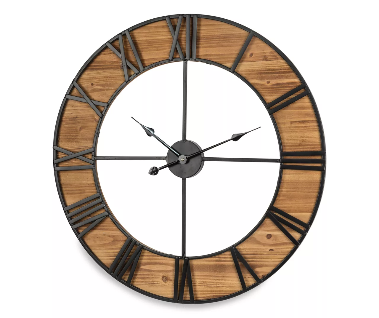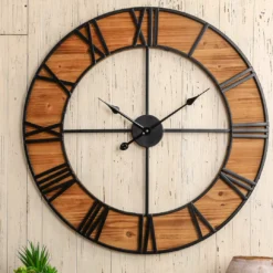 Indulge in a charming, rustic way to tell time with this lovely wall clock. Its large, easy-to-read Roman numerals on a wood-look background exude classic style. And with a center cut-out design that creates a floating shadow effect on the wall, you can be sure this clock will bring a cool, unique atmosphere to your home’s aesthetic.