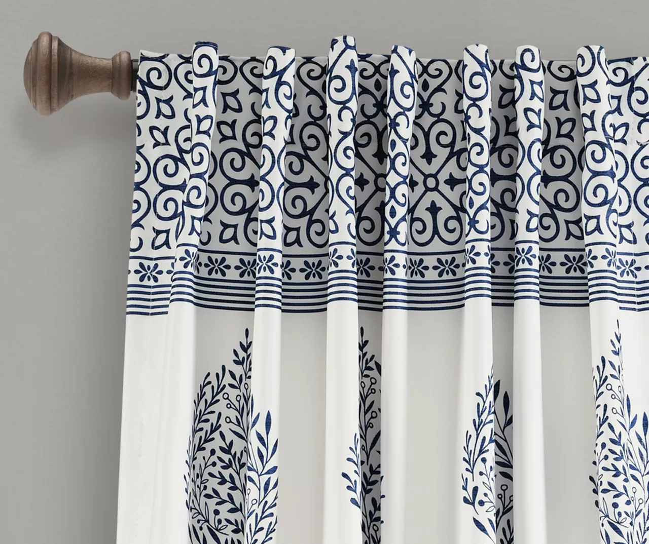 - Room-darkening curtain panels help filter out sunlight and provide privacy