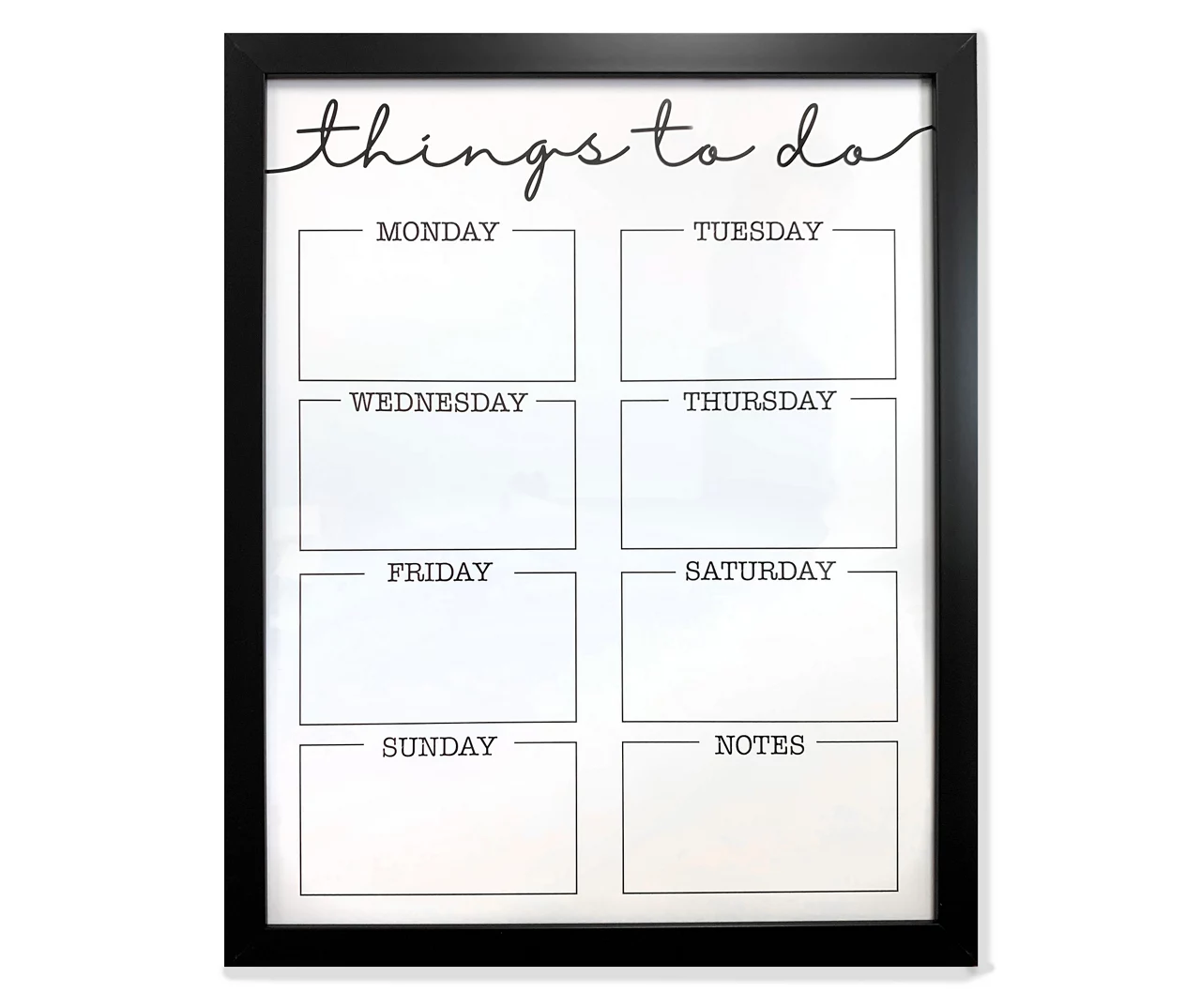 Organizing your home will be a breeze thanks to this dry erase board that has you set all week. It includes a space for each day of the week as well as a section for notes. Hang it in the kitchen or office and keep track of appointments, meals, schedules and to-dos. When the week is through, simply erase and start again!