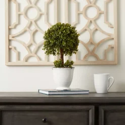Enjoy the look of real greenery without the upkeep thanks to this darling artificial plant. A rich green topiary is accented by a ceramic pot for a chic contrast. Display it in any living or work space for a pop of color.