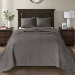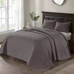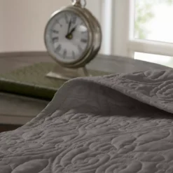 The Vancouver bedspread set offers a charming cottage-inspired update to your bedroom. The reversible bedspread and shams flaunt a classic stitch pattern that creates a rich depth and texture on the face of the bedding set. Prewashed cotton filling provides added comfort and durability, while the oversized dimensions allow the bedspread to drape better. The bedspread also has an antimicrobial treatment that helps provide built-in freshness protection to keep fabric lasting longer.