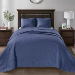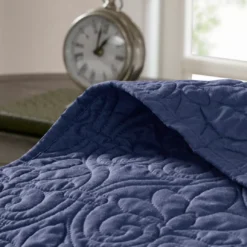 The Vancouver bedspread set offers a charming cottage-inspired update to your bedroom. The reversible bedspread and shams flaunt a classic stitch pattern that creates a rich depth and texture on the face of the bedding set. Prewashed cotton filling provides added comfort and durability, while the oversized dimensions allow the bedspread to drape better. The bedspread also has an antimicrobial treatment that helps provide built-in freshness protection to keep fabric lasting longer.