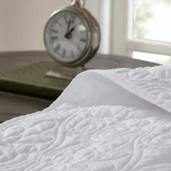 The Vancouver bedspread set offers a charming cottage-inspired update to your bedroom. The reversible bedspread and shams flaunt a classic stitch pattern that creates a rich depth and texture on the face of the bedding set. Prewashed cotton filling provides added comfort and durability, while the oversized dimensions allow the bedspread to drape better. The bedspread also has an antimicrobial treatment that helps provide built-in freshness protection to keep fabric lasting longer.