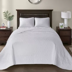 The Vancouver bedspread set offers a charming cottage-inspired update to your bedroom. The reversible bedspread and shams flaunt a classic stitch pattern that creates a rich depth and texture on the face of the bedding set. Prewashed cotton filling provides added comfort and durability, while the oversized dimensions allow the bedspread to drape better. The bedspread also has an antimicrobial treatment that helps provide built-in freshness protection to keep fabric lasting longer.