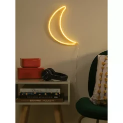 Enjoy a celestial note with the ambient glow of this moon-shaped LED neon wall light. It’s USB powered and comes with a 6′ lead cable to make placement easy.