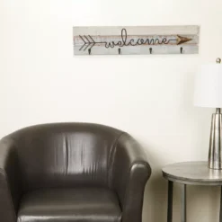Adorn your wall with a welcoming message while adding storage with this chic sign. The distressed wood makes a perfect farmhouse-inspired accent and metal hooks add a rustic touch. It’s perfect by the entryway for keys or other essentials.