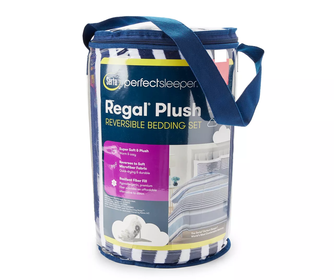 Refresh a master or guest bedroom with this comforter set from Serta Perfect Sleeper featuring a plush stripe front that reverses to a soft microfiber side that wicks away moisture and is quick-drying. The down-alternative fill is hypoallergenic and provides cozy warmth through the night.