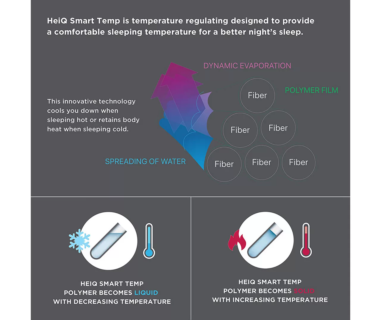 - Material: Top: 100% polyester microfiber with HeiQ temperature regulating treatmentFilling: 100% polyester fiber fillingBack: Non-wovenBottom: