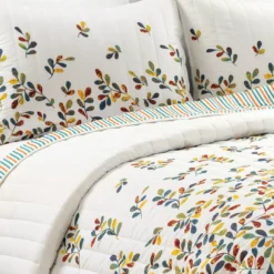 Nature patterns, bold colors and luxurious comfort combine in this boho beauty of a bedding set from Lush Décor. The reverse side of this unique quilt set reveals beautiful turquoise and orange stripes giving you two complete looks in one.