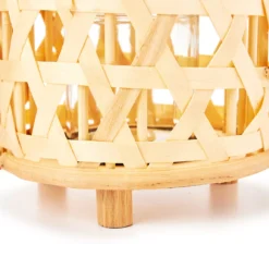 This lantern brings style and illumination to your home. The open weave look is made from rattan and wood as a glass holder in the center displays your favorite LED candle. It’s a charming addition to a mantel, table or shelf.