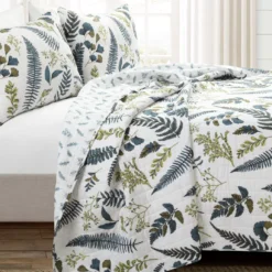Devonia Allover White & Green Floral Room-Darkening Rod Pocket Curtain Panel Pair, (95″)
