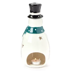 Frosted Forest Snowman & Snowflake Ceramic Tealight Candle Holder