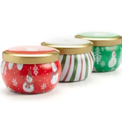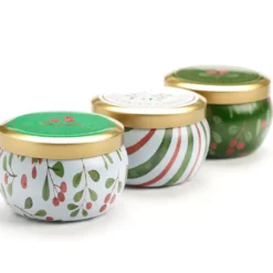 Fresh Balsam, Santa’s Cookies & Cinnamon Cheer Holly Berry Tin Candle Gift Set, 3-Pack